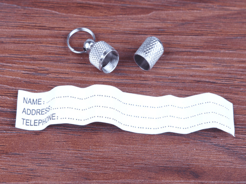 Nadie quiere perder a su mascota… pero puede pasarte. Con este accesorio estarás más preparada/o para emergencias: dentro de este pequeño (24x10mm) barril metálico podrás poner datos de contacto para que quien encuentre a tu amado de 4 patas pueda hablarte para programar ese reencuentro 🙂