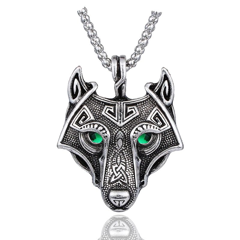 Collar de cabeza de lobo estilo vikingo con ojos de cristal