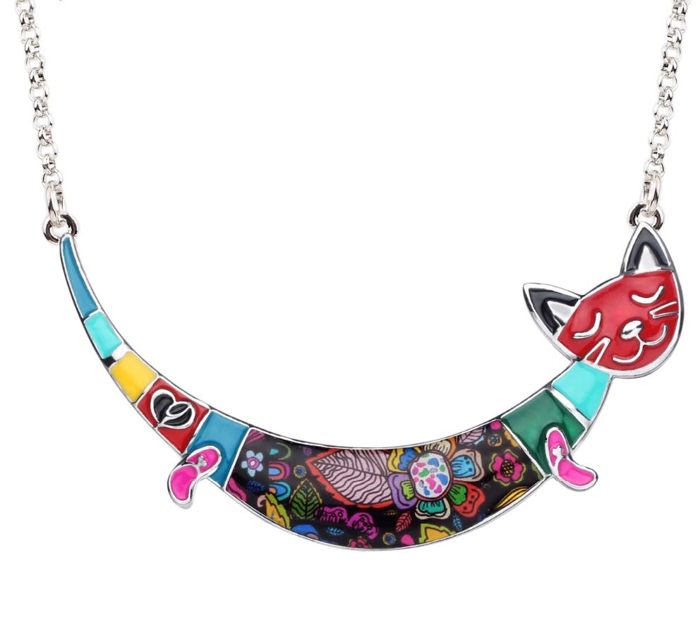Hermoso collar de esmalte y aleación, con un gato sonriente, súper colorido y original