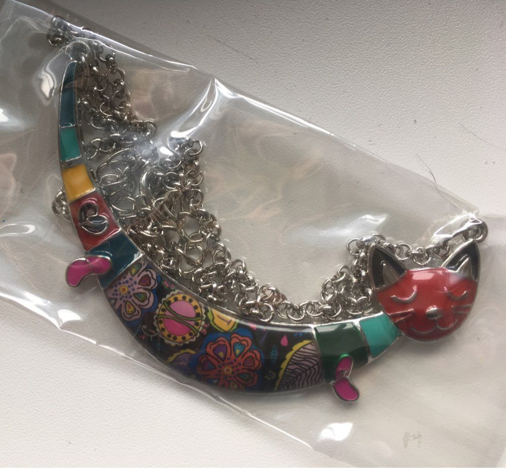 8 valoraciones en Hermoso collar de esmalte y aleación, con un gato sonriente, súper colorido y original