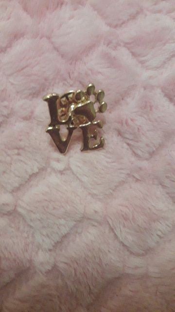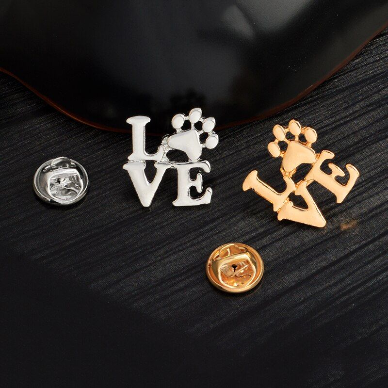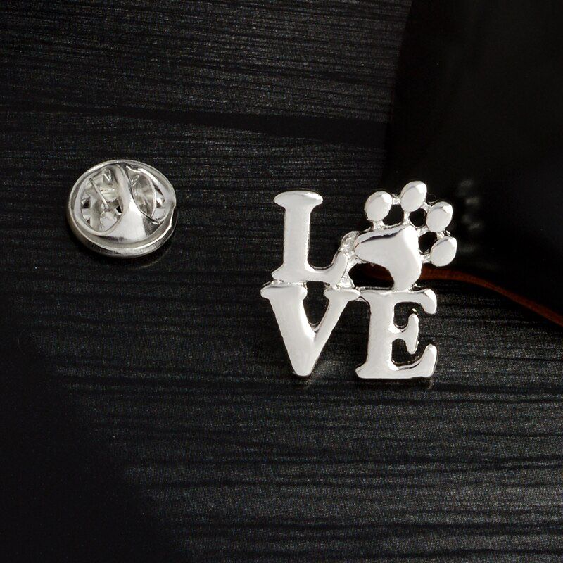 Pin con la palabra “love” con una patita de perro en lugar de la “O”