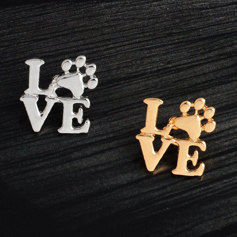 2 valoraciones en Pin con la palabra “love” con una patita de perro en lugar de la “O”